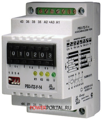 Реле времени РВ3-П2-У-14 Трехцепное реле времени РВ3-П2 предназначено для выдачи команд в цепи схем управления через контакты встроенных электромагнитных реле после отработки предварительно установленных выдержек времени