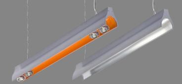 CORRIDO NS — отражателем для люминесцентной лампы является внутренняя поверхность алюминиевого профиля, окрашенного порошковой краской цвета металлик. Возможно окрашивание в любой цвет по шкале RAL. Рефлекторные МГЛ или ГЛН.
