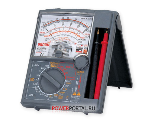 Аналоговый мультиметр YX-360TRF Мировой бестселлер среди аналоговых мультиметров Противоударная конструкция – не боится падений на пол Защита электронной схемы от высокого напряжения по входу (до 230В эфф.) Высокие электроизоляционные параметры (максимально допустимое напряжение на входе относительно корпуса 3КВ) Постоянное напряжение: 100mV: ±5.0% от шкалы, 250m/2.5/10/50/250/1000V: ±3.0% от шкалы Постоянное напряжение переменной полярности ±5V / ±25V: ±5.0% от шкалы Переменное напряжение: 10/50/250/750V: ±4.0% от шкалы Постоянный ток: 50μ/2.5m/25m/250mA: ±5.0% от шкалы Сопротивление: 2K/20K/200K/2MΩ: ±3.0%, 200MΩ: ±5.0% от измеренного значения Емкость конденсаторов: 10μF dB: -10dB ~ +22dB (10VAC) ~ +62dB Ток утечки транзисторов: 0 ~ 150mA на диапазоне x1 0 ~ 15mA на диапазоне x10 0 ~ 1.5mA на диапазоне x100 0 ~ 150μA на диапазоне x1K 0 ~ 1.5μA на диапазоне x100K Диодный тест Высокое напряжение: 0 - 25KV (при использовании пробника HV-10T) Коэффициент усиления транзисторов по току: 1 - 1000 (при использовании адаптера HFE-6T) Made in Japan