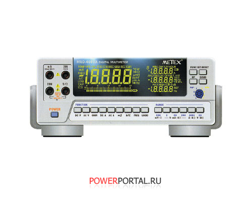 Цифровой настольный мультиметр MXD-4660A Разрядность мультиметра: 20 000 отсчетов Основной и три вспомогательных дисплея + аналоговая шкала Базовая погрешность измерения ±0.05% Постоянное напряжение: 200m/2/20/200V: ±0.05%, 1000V: ±0.1% Переменное напряжение: 200m/2/20/200/750V: ±0.8% Постоянный ток: 2m/20m/200mA: ±0.3%, 20A: ±0.5% Переменный ток: 2m/20mA: ±1.5%, 200mA: ±2.5%, 20A: ±1.5% Сопротивление: 200Ω: ±0.2%, 2K/20K/200K/2MΩ: ±0.15%, 20MΩ: ±0.5% Частота: 20K/200K/2M/20MHz: ±0.1%, Частота при измерении напряжения до 20V: 40Hz – 1KHz: ±0.8%, 1KHz – 10KHz: ±2.5% Коэффициент усиления транзисторов по току: 1 – 1000 Тест логических уровней Диодный тест Прозвонка соединений Удержание показаний DATA HOLD Режим AUTO HOLD Режим измерений REL относительно заданного оператором значения 10 ячеек памяти результатов измерений Режим сравнения с заданным диапазоном CMP Интерфейс RS232C для связи с компьютером, кабель и программа в комплекте