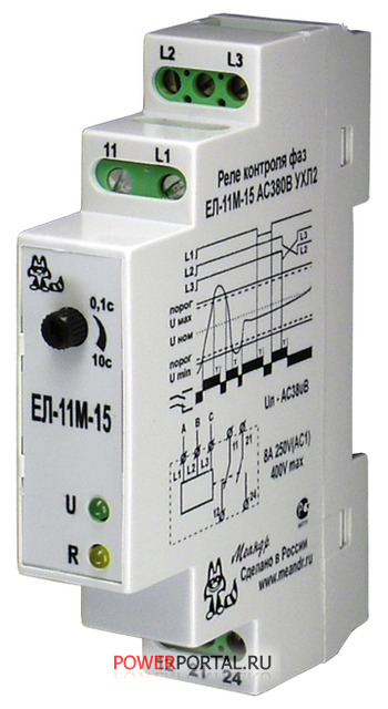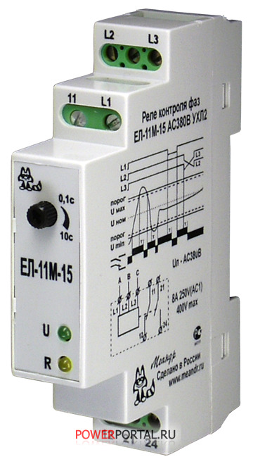 Описание / Назначение / Характеристики ЕЛ-11М Реле фаз общего применения ЕЛ-11М-15. Реле контролирует порядок чередования фаз, обрыв и слипание фаз, линейного превышение (снижение) напряжения выше (ниже) фиксированного значения