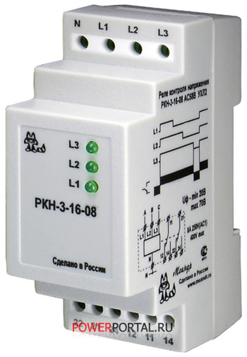Реле контроля напряжения для сетей c нейтралью РКН-3-16-08 Назначение и особенности модификации: