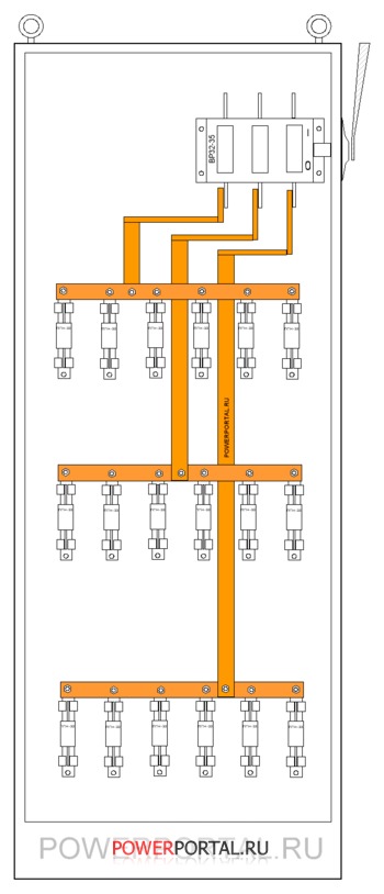 Номинальное напряжение, В 380 Род тока переменный Частота, Гц 50 Количество фаз 3 Номинальный ток вводного аппарата, А 250, 400 Число отходящих линий 2, 3, 4, 5, 8 Номинальный ток отходящих линий, А 60,100, 250 Габаритные размеры, мм не более - высота 1600 - ширина 500, 700 - глубина 350 Масса, кг не более 52, 84