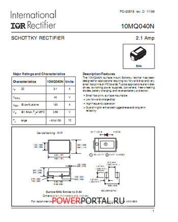 Описание / Назначение / Характеристики 10MQ040N Описания нет