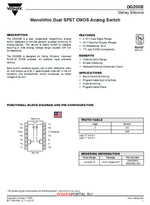 Файлы для скачивания Описание для Микросхема DG200BDJ в формате PDF (81 Kb)