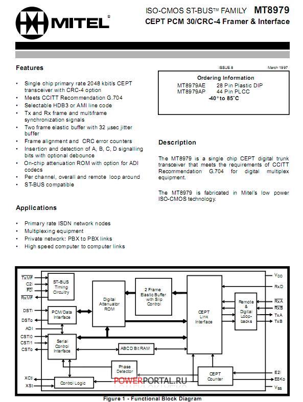 Описание / Назначение / Характеристики MT8979AP Описания нет