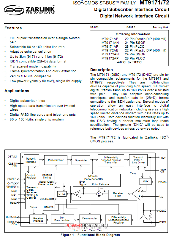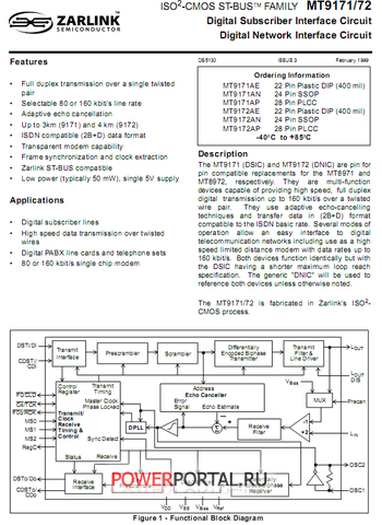 Описание / Назначение / Характеристики MT9171AP Описания нет
