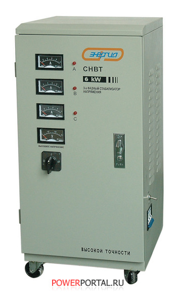 0,5; 1,0; 1,5 кВА – бытовые приборы небольшой мощности (холодильник, телевизор) 2,0; 3,0; 5,0 кВА – может использоваться для стабилизации напряжения в целой квартире 8,0; 10,0; 15,0; 20,0 кВА – электропитание загородного дома с мощными однофазовыми бытовыми приборами (котлы, водонагреватели и т.п.) Изделие соответствует ГОСТ Р 50030.5.1-99. Гарантия 1год