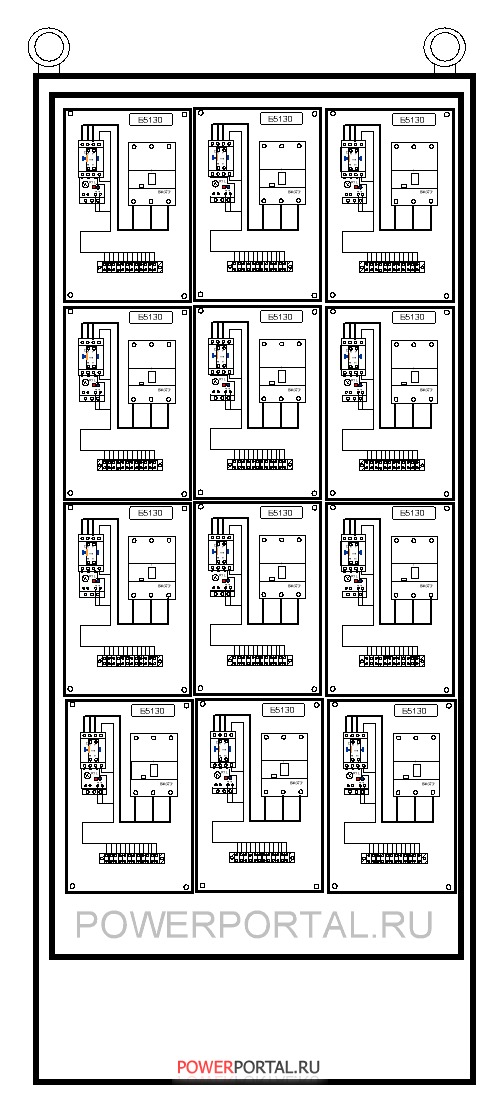 Размеры шкафов: Высота - 2000мм, ширина - 800 мм, глубина - 400 мм для однорядного расположения блоков и 800 мм для двухрядного расположения блоков. Блоки имеют ширину 730 мм и высоту 150, 200, 300, 400, 500, 600, 700 мм. Номинальное напряжение шкафов ввода и блоков управления: силовых цепей - 380В частоты 50 Гц и цепей управления - 220 В и 380 В частоты 50 Гц. Номинальный ток шкафов ввода: с одним реактором - 50 А; с двумя реакторами - 100 А. Боковые стенки в шкафных щитах устанавливаются только на крайние наружные шкафы.