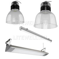 Ассортимент подвесных светодиодных светильников Litewell серии Well ABOVE включает в себя только ... Ассортимент подвесных светодиодных светильников Litewell серии Well ABOVE включает в себя только качественную светотехнику профессионального использования. При этом различие в компоновке и дизайне световых приборов обеспечивает возможность их применения для различных условий эксплуатации и помещений. Светодиодные светильники High bay LED-LF03 (2 вида типоразмера и мощности) максимально приближены к классическим подвесным светильникам типа "колокол". Полупрозрачный рассеиватель эффектен не только внешне, но и конструктивно, обеспечивая оптимальное рассеивание направленного светового потока. Линейные светильники LED-F007-12 и LED-L00x отличаются возможностью как подвесного, так и накладного монтажа. Отметим, что LED-L002, предлагаемый в двух вариантах длины и мощности, позволяет производить стыковку светильников в одну линию ...Далее»