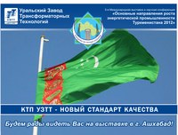 ТД УЗТТ принимает участие в 5-й Международной выставке и научной конференции Основные направления ... ТД УЗТТ принимает участие в 5-й Международной выставке и научной конференции "Основные направления развития энергетической промышленности Туркменистана". На выставке вы узнаете о новейших разработках в сфере энергетики, стратегии развития энергетической отрасли Туркменистана до 2020 г., а также обретете выгодные партнерские отношения и деловые связи с лидерами энергетической промышленности. Специалисты ТД "Уральский завод трансформаторных технологий" приглашают Вас к нашему стенду №19. Договориться о встрече на выставке и проконсультироваться по интересующим Вас вопросам можно по телефону: +7 912 64 94 591, ICQ: 193 105 461, по E-MAIL: market-uztt@mail.ru Выставка состоится с 8 по 10 сентября 2012г. в Выставочном Дворце СЕРГИ КОШГИ, по адресу: Туркменистан, г. Ашхабад, пр-т Независимости, 104 Следите за информацией на нашем сайте http://uztt.ru Ждем Вас на выставке!