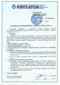 Национальная атомная энергогенерирующая компания «Энергоатом» Министерства топлива и энергетики ... Национальная атомная энергогенерирующая компания «Энергоатом» Министерства топлива и энергетики Украины утвердила ООО «Харьковэнергоприбор» в качестве поставщика и предоставила право выполнения для ГП НАЭК «Энергоатом» и его структурных подразделений следующих видов работ: •изготовление высоковольтного оборудования; •изготовление электротехнических лабораторий различного назначения: ЭТЛ-10, ЭТЛ-35, ЭТЛ-35К, ЭТЛ-ВВ, ЭТПЛ-35/110, ЭТЛ-200, ЭТЛ-350; •изготовление устройств и приборов для испытаний и проверки оборудования, электроустановок, определения мест повреждения в кабелях: СНЧ-25, СНЧ-60, УПЗ-80, ППЗ-80, АИД-70/50, Тангенс-3М, УИМ-90М, ГЗЧ-2500 с приемником П-900, РИФ-7, СВС-50 и СВС-100, СВС-50А и СВС-100А, УПА-6, УПА-10, УПА-16, УПА-20, УПУ-6, АИ-2500, СВА-6, СВП-05, ИОМ-100/6, ИОМ-100/16, ИОМ-100/20, ИОМ-100/26, НОМ(э)-35/110, ИТ-720, ИТ-3600, ВП-300.