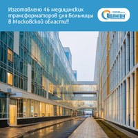 Компания «Полигон» в очередной раз производит медицинское электрооборудование для Больницы в ... Компания «Полигон» в очередной раз производит медицинское электрооборудование для Больницы в поселке Коммунарке в Московской области. Многопрофильная больница в Коммунарке – это 9 корпусов, соединенных между собой наземными и подземными переходами. Медицинский центр площадью 160 000 кв.м. рассчитан более чем на 1000 коек и занимает территорию около 13 га. Больница оснащена суперсовременными технологиями и предполагает оказание почти всех существующих медицинских услуг, в том числе родильный дом и высокотехнологичные операционные. Во вторую очередь строительства больницы завод «Полигон» изготовил 46 медицинских трансформаторов мощностью от 5 до 10 кВА.