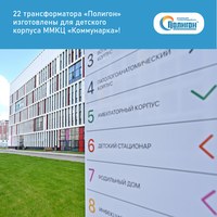 Строительство детского корпуса на 180 коек для больницы в Коммунарке завершено на 70 процентов. На ... Строительство детского корпуса на 180 коек для больницы в Коммунарке завершено на 70 процентов. На данном этапе идет монтаж инженерных систем. Трансформаторы «Полигон» уже отгружены в Московский многопрофильный клинический центр «Коммунарка» для корпуса №6. В общей сложности заводом было изготовлено 22 медицинских трансформатора разной мощности: от 3 до 10 кВА. Оборудование «Полигон» будет установлено в новом восьмиэтажном здании площадью 24,2 тысячи квадратных метров. В нем будут работать приемное, палатное педиатрическое отделение, отделение общей хирургии, нейротравматологическое отделение, отделения оториноларингологии, неврологии, анестезиологии и реанимации, эндоскопии, ультразвуковой, лучевой и функциональной диагностики, патологии новорожденных, реанимации новорожденных, операционный блок и дневной стационар.