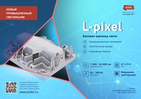 L-pixel: базовая единица света Небольшой вес, компактные размеры, универсальность – всё это ... L-pixel: базовая единица света Небольшой вес, компактные размеры, универсальность – всё это L-pixel. Сегодня мы выводим на рынок самый доступный промышленный светильник LEDEL. Это новая разработка наших инженеров, основанная на модульности. Светильник может состоять из одного, двух, трёх, четырёх или шести частей в серийном исполнении (по техническому заданию возможно больше). L-pixel – базовое решение, которое подходит для освещения промышленных объектов, логистических комплексов, а также спортивных центров и открытых парковок ...Далее»