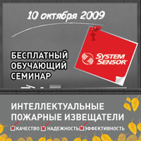 Корпорация СКАЙРОС объявляет о проведении бесплатного обучающего семинара совместно с нашим партнером компанией «Систем Сенсор Фаер Детекторс». Семинар «System Sensor – интеллектуальные пожарные извещатели. Качество, надежность, эффективность» пройдет 1.10.2009. Программа семинара Классификация пожарных извещателей (ПИ) и систем пожарной сигнализации (СПС). Сравнительный анализ пороговых, адресных неопросных, адресных опросных и адресно-аналоговых СПС. Преимущества адресных опросных и адресно-аналоговых СПС. Обзор продукции Систем Сенсор: •неадресная экономичная серия ЕСО1000, новый ручник ИПР-ПРО; •серия интеллектуальных извещателей ПРОФИ; •серия адресных опросных извещателей Леонардо ...Далее»