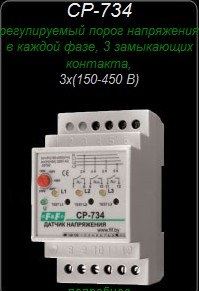 Описание для CP-734 регулируемый порог напряжения в каждой фазе, 3 замыкающих контакта, 3х(150-450 В)