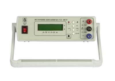 Источники питания Б5-71/1МС, Б5-71/1МСУ имеют ультранизкие пульсации выходного напряжения и тока и предназначены для питания электро и радиоустройств, чувствительных к различным помехам по питанию, стабилизированным напряжением ( до 75 вольт) или током (до 10 ампер) общей мощностью до 300 ватт, с цифровой индикацией текущих и предустановленных значений напряжения и тока. Б5-71/1МСУ имеет возможность внешнего управления по RS-232.