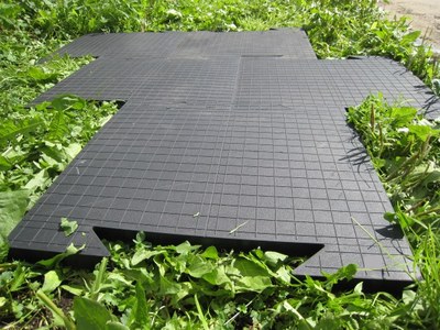 Покрытие из литой резины может применяться для быстрой сборки автомобильных стоянок на улице и как сборные полы в гаражи и мастерские.