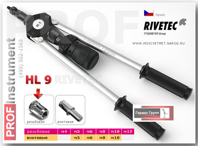 Ручной заклепочник RIVETEC HL9 (Чехия) профессиональный ручной инструмент для установки резьбовых (гаечных) заклепок и винтовых заклепок.