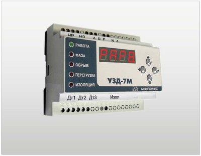 Микропроцессорное устройство защиты двигателя УЗД-7М (в комплекте с датчиками тока) предназначено для защиты трехфазных электродвигателей и других трехфазных нагрузок (рабочие токи от 1,5 до 400 А) от различных видов токовых аварий. Изделие обеспечивает возможность дистанционного мониторинга состояния двигателя.