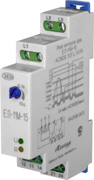 Реле контроля трехфазного напряжения ЕЛ-11М-15 АС380В общего применения. Используется для контроля порядка чередования, обрыва и «слипания» фаз.