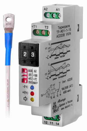 Терморегулятор ТР-М01-1-15 АС220В. Используется для контроля и поддержания заданного температурного режима в помещениях, овощехранилищах, системах водяного отопления, охлаждающих системах жидкостей, предметов и т.п., а также в качестве комплектующего изделия в устройствах автоматики.