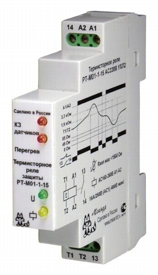Реле термисторной защиты для контроля температуры с помощью РТС. Используется для защиты электродвигателей и прочего оборудования от перегрева. Также можно применять для контроля температуры подшипников, вентиляторов горячего воздуха, масел, воздуха, отопительных установок и трансформаторов.