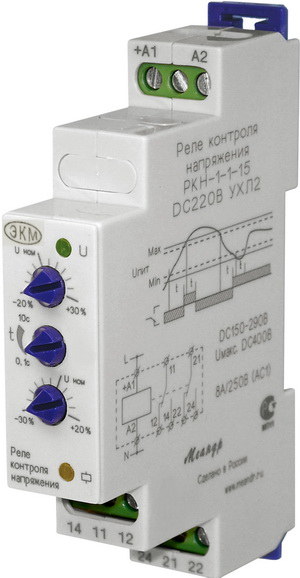 Реле контроля переменного однофазного и постоянного напряжения РКН-1-1-15 АС220В. Используется для контроля превышения (или снижения) напряжения выше (или ниже) фиксированного значения.