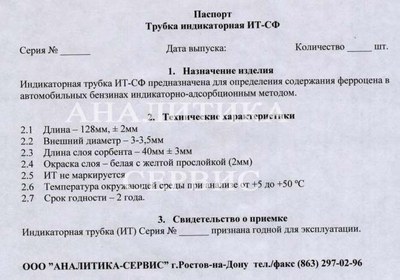 Как купить ИТ-СФ Индикаторная трубка для определения содержания ферроцена в бензинах индикаторно-адсорбционным методом