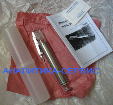 Шприц-дозатор состоит из цилиндрического корпуса, выполненного из нержавеющей стали, и штока с поршнем. Объем топлива, засасываемого шприцем - 50 мл.