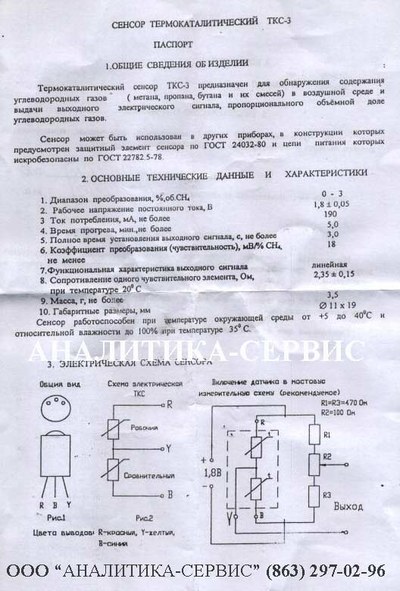 Описание для Сенсор термокаталитический ТКС-3 Сигнал-2 (г.Конотоп, Украина)