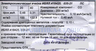 Как купить Ячейка электрохимическая на СО ИБЯЛ418.425.035-21 к ДАХ-СО-200