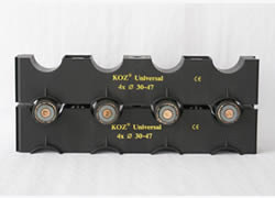 Крепежные хомуты TRI фирмы KOZ были специально спроектированы для обеспечения наилучшего способа монтажа трёх одножильных кабелей среднего и высокого напряжения в форме треугольника, и всегда могут поставляться в больших количествах со склада.