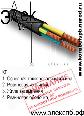 Кабели КГ предназначены для присоединения передвижных механизмов к электрическим сетям на номинальное напряжение 660В частотой до 400Гц или постоянное напряжение 1000В