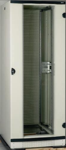 Встроенный цоколь высотой 100мм с перфорированными пластинами. Стойки для установки уровня, регулируемые по глубине. Поставляется с двумя 19 монтажными стойками для шкафа глубиной 600мм и с 4 монтажными стойками для шкафа глубиной 800мм.