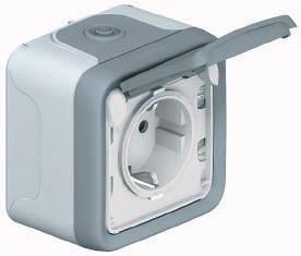 Описание для Розетка накладная Plexo IP55 2К+З 16А, моноблок, немецкий стандарт, Серый | арт. 69733 | Legrand