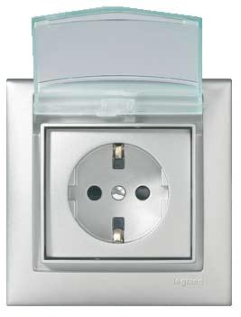 В серии Valena от Legrand предлагается полный ассортимент влагозащищенных (степень защиты IP 44) рамок и розеточных блоков с откидной крышкой и защитной шторкой.