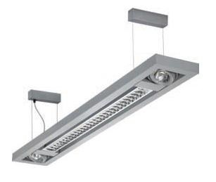 Бипараболическая решетка из анодированного алюминия марки MIRO для двух люминесцентных ламп и рефлекторные лампы МГЛ.