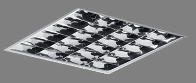 Экранирующая решетка изготовлена из зеркального алюминия. Устанавливается в корпус скрытыми пружинами.