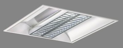 Бипараболическая решетка из матированного алюминия марки MIRO и боковые параболические ребристые алюминевые отражатели.